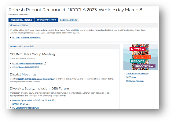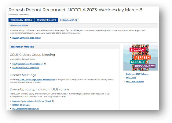Presentation materials for the 2023 NCCCLA Conference are available online.